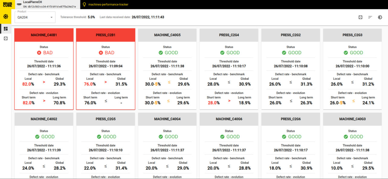 Monitor real-time performances of a group of machines (or any production asset) and get alerted if one machine is underperforming compared to others or its usual performance.
